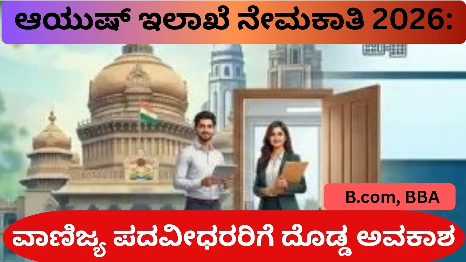 AYUSH DEPARTMENT ಬೆಂಗಳೂರು ನಗರದಲ್ಲಿ ಸರ್ಕಾರಿ ಉದ್ಯೋಗಕ್ಕಾಗಿ ಕಾಯುತ್ತಿರುವ ಯುವಜನತೆಗೆ ಇದೀಗ ಒಂದು ದೊಡ್ಡ ಅವಕಾಶ ತೆರೆದಿದೆ.ವಿಶೇಷವಾಗಿ ವಾಣಿಜ್ಯ ವಿಭಾಗದಲ್ಲಿ ಪದವಿ ಪಡೆದಿರುವ ವಿದ್ಯಾರ್ಥಿಗಳಿಗೆ ಇದು ಒಂದು ಸುವರ್ಣಾವಕಾಶ ಎಂದೇ ಹೇಳಬಹುದು. ಕರ್ನಾಟಕ ಸರ್ಕಾರದ ಆಯುಷ್ ಇಲಾಖೆ ವತಿಯಿಂದ ಖಾಲಿ ಇರುವ ಖಾತೆ ಸಹಾಯಕ ಹುದ್ದೆಗಳನ್ನು ಭರ್ತಿ ಮಾಡಲು ಅಧಿಕೃತವಾಗಿ ಅರ್ಜಿ ಆಹ್ವಾನಿಸಲಾಗಿದೆ.