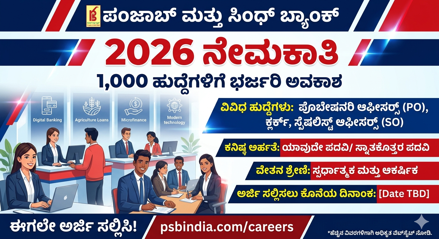 Bank ಪಂಜಾಬ್ ಮತ್ತು ಸಿಂಧ್ ಬ್ಯಾಂಕ್ ನೇಮಕಾತಿ 2026: 1,000 ಹುದ್ದೆಗಳಿಗೆ ಭರ್ಜರಿ ಅವಕಾಶ