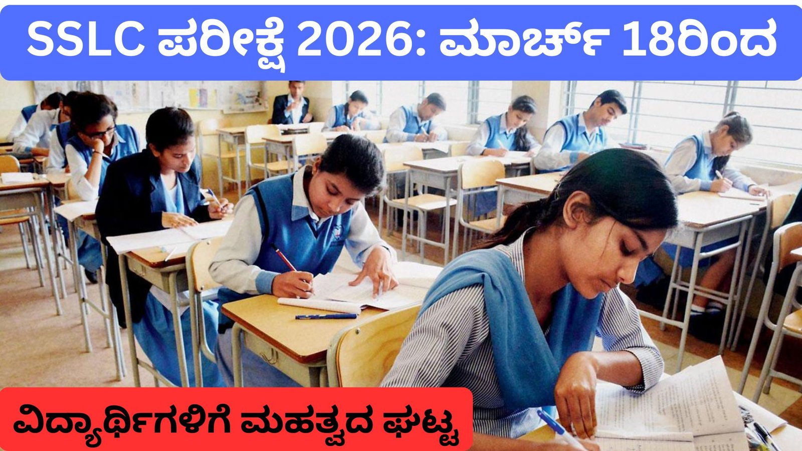 SSLC ಕರ್ನಾಟಕದಲ್ಲಿ ಪರೀಕ್ಷೆ 2026 ಮಾರ್ಚ್ 18ರಿಂದ ಆರಂಭವಾಗಲಿದೆ.